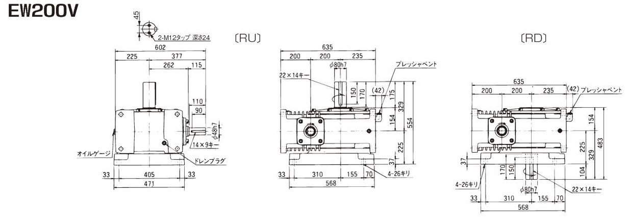 TSUIBAKI蜗轮蜗杆传动 减速机EW、EWM(R)、EWJ、EWJM(R) 系列:EW200V10LU
